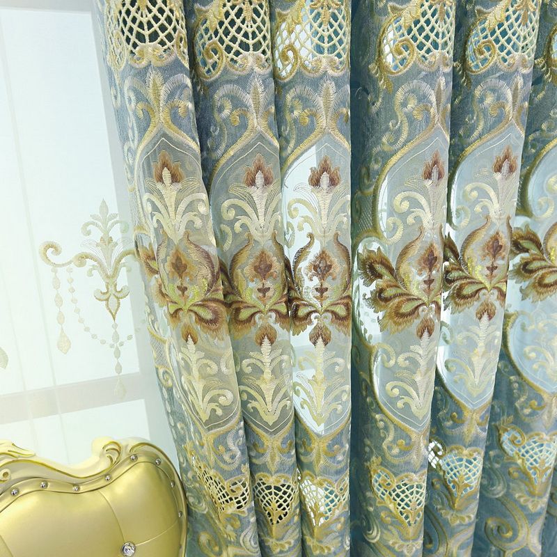 European Luxury Light Blue Embroidered Blackout Decorative