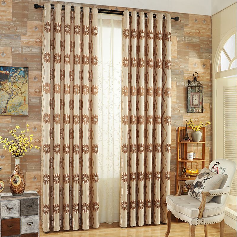 Europe Style Embroidered Splice Gold Curtains For Living Room